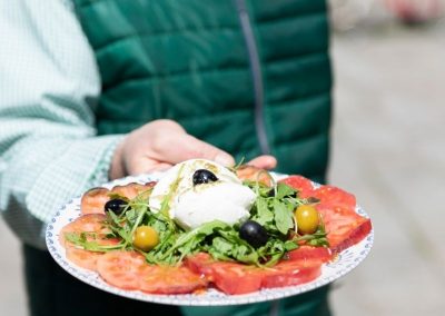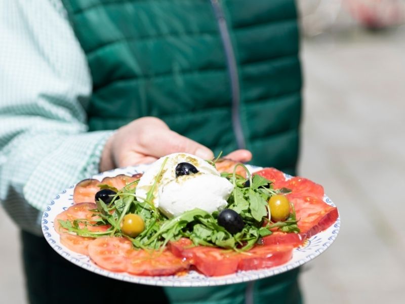 Ensalada caprese (mozzarella, rúcula, tomate y salsa casera | 5.00€