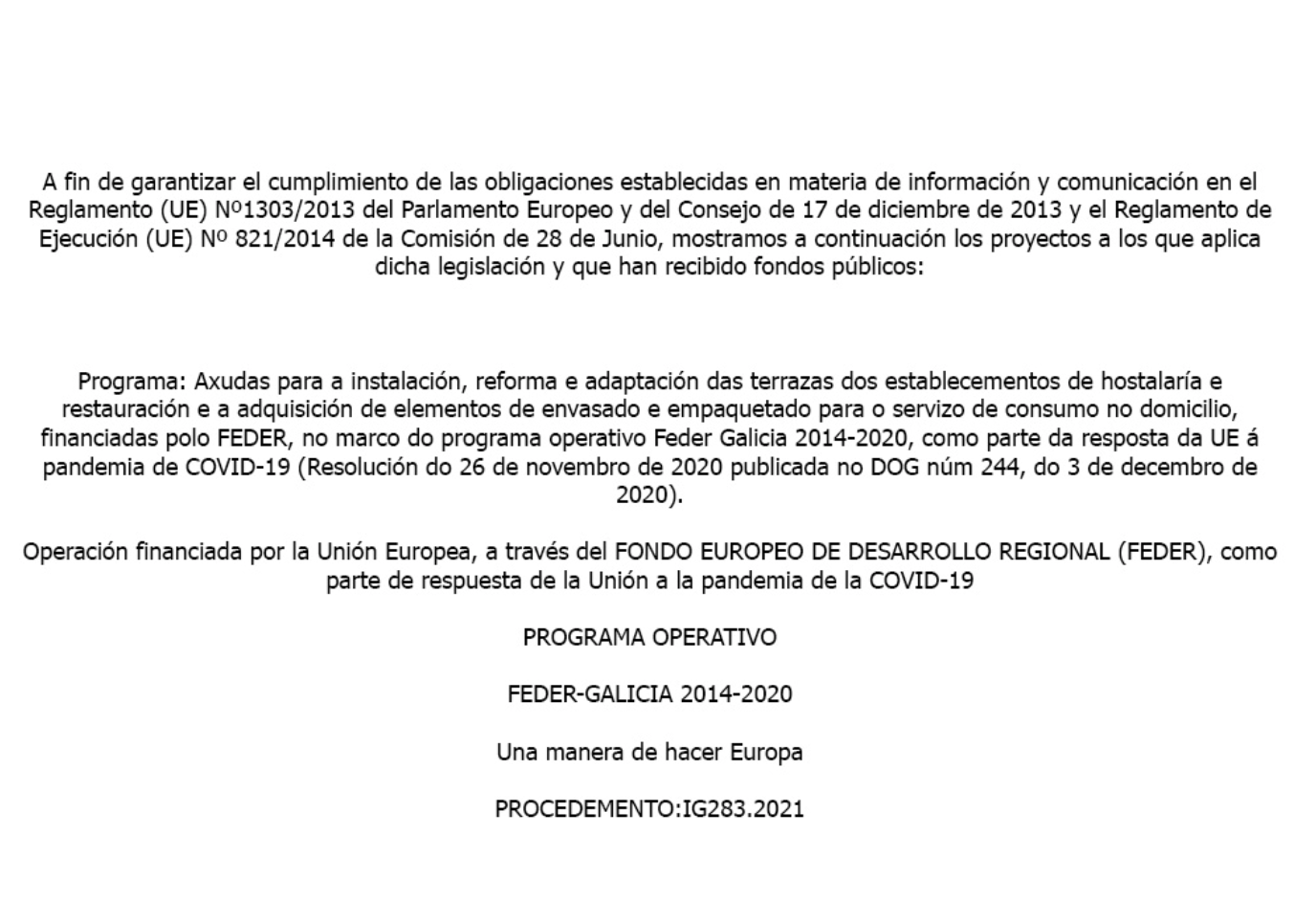 «HERMASAL TEUCRO, S.L., ha sido beneficiaria del Fondo Europeo de Desarrollo Regional cuyo objetivo es mejorar el uso y la calidad de las tecnologías de la información y de las comunicaciones y el acceso a las mismas, y gracias al que ha podido mejorar su gestión empresarial, a través de la implantación de una página web (Presencia web a través de página propia). Esta acción ha tenido lugar durante la anualidad 2021. Para ello, ha contado con el apoyo del Programa TICCámaras de la Cámara de Comercio de Pontevedra, Vigo y Vilagarcía de Arousa»